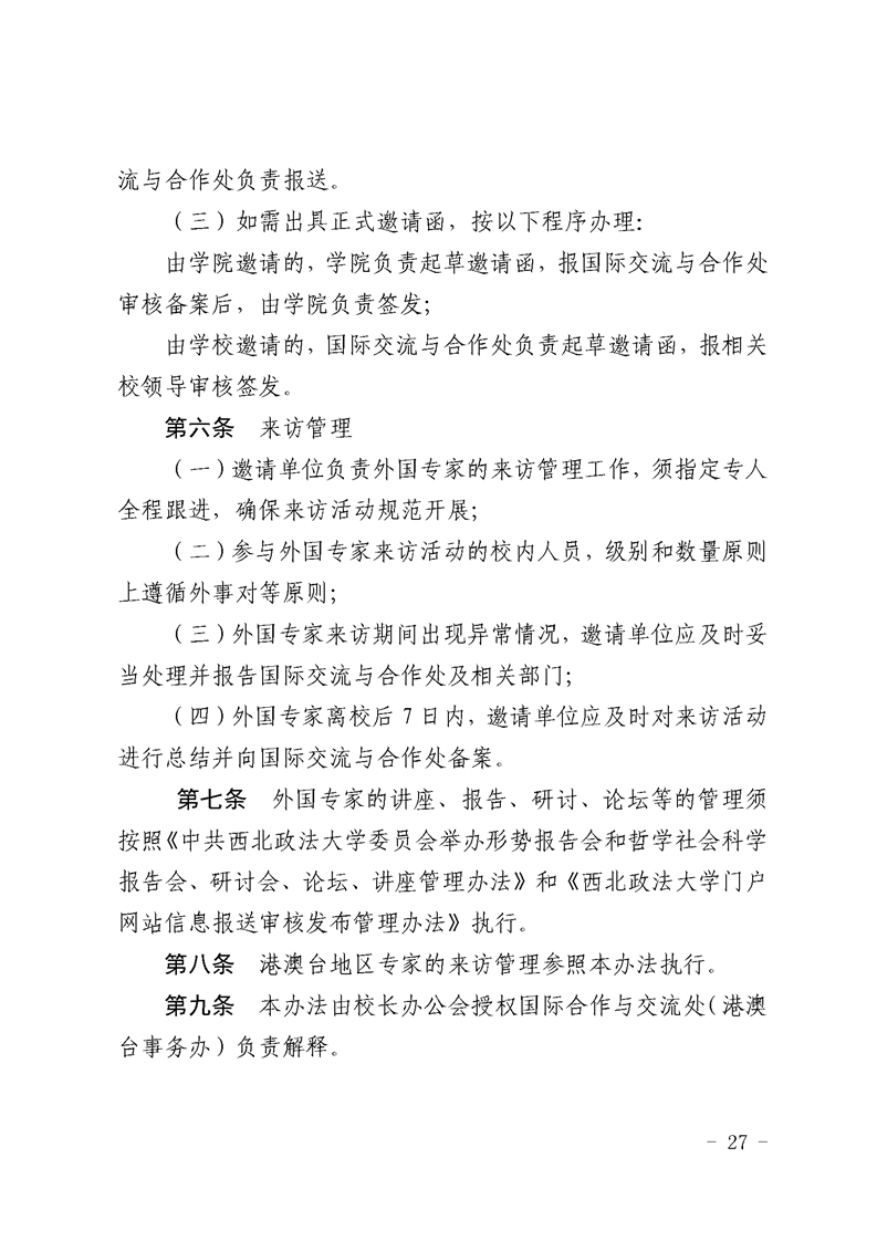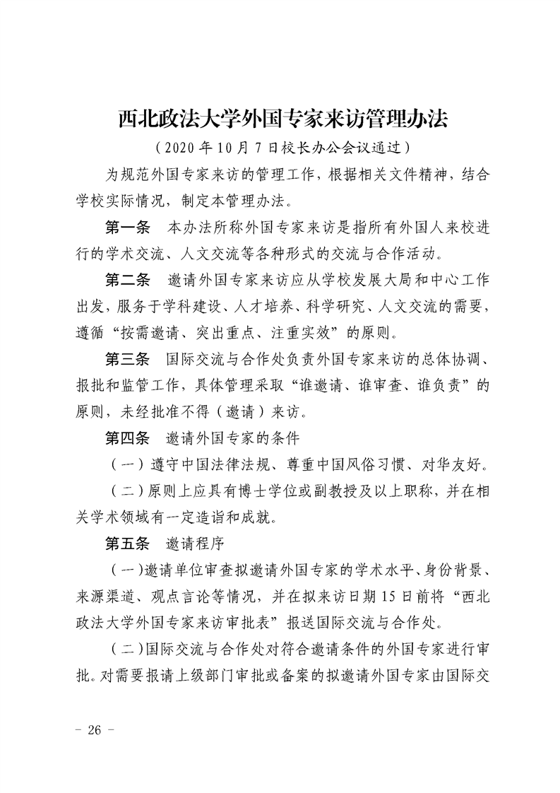 西北政法大学外国专家来访管理办法