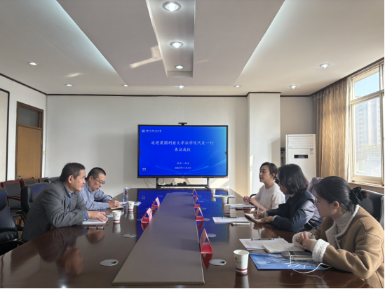 张荣刚对利兹大学法学院一行到访表示热烈欢迎,并就我校代表团2024年访问该校期间所获的热情接待致以诚挚谢意。他指出,两校已奠定良好合作基础,希望在此之上进一步巩固合作成果、拓展合作维度,充分整合双方在法学教育、科研创新及实践资源等领域的核心优势,通过构建更为开放融合的国际化人才培养体系,共同探索兼具前瞻性与实效性的法治人才培养新路径,为服务全球治理贡献坚实的人才支撑与智力保障。